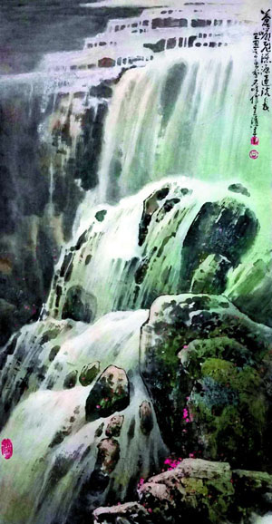 ▲源遠(yuǎn)流水(國畫)紀(jì)偉基