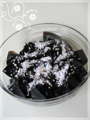 草粿是用仙人草(俗稱草粿草)煎取藥液,濾汁去渣,加入適量淀粉(通常是用薯粉),充分?jǐn)嚢杈鶆?,加熱煮滾之后,盛于容器(傳統(tǒng)是用陶缽、瓷缸)冷凝成膏狀,即成為黑色晶瑩的草粿.食用時,用專用銅勺切成一片片裝進(jìn)小食碗里,邊撒上紅糖(今多添加白砂糖),便可啜飲。