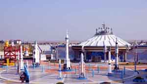 “太空山”是一個(gè)以太空為主題、集教育性、娛樂(lè)性、知識(shí)性于一體的大型游樂(lè)項(xiàng)目,它不同于其它娛樂(lè)項(xiàng)目之處在于,“太空山”把太空知識(shí)融入到游樂(lè)之中,讓游客以一種輕松娛樂(lè)的心態(tài)了解太空,增長(zhǎng)見識(shí)?!疤丈健敝黝}項(xiàng)目由“太空知識(shí)”、“神舟六號(hào)發(fā)射中心”、“寬視覺(jué)影視墻”、“時(shí)空隧道”、“星空走廊”、“飛越太空”等幾大部分組成,每個(gè)項(xiàng)目都以太空為主題,同時(shí)又各有自己的特色。飛越太空以空間成像的方式向游人展示太空景觀,時(shí)空隧道表現(xiàn)的是空間變幻無(wú)窮的奇幻景象。星空走廊反映浩瀚無(wú)垠的宇宙天體,航天知識(shí)區(qū)是一個(gè)天文科普展區(qū),展示外太空各種天體景觀與各種天文現(xiàn)象。