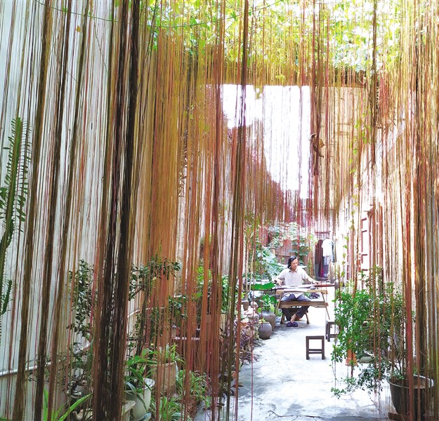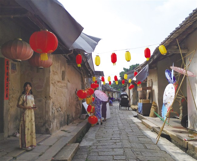 走在古寨幽靜的巷子里,總是能不期而遇一些有趣的場(chǎng)景。隔著植物天然形成的門簾,一位男子專注撫琴,對(duì)突然闖入的游人渾然無睹,只陶醉于自己的琴音之中;轉(zhuǎn)過小巷,突然眼前都是穿著民國服裝的人物,原來是某個(gè)劇組正在這里拍攝歷史紀(jì)錄片。