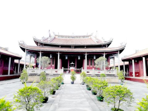 揭陽人是非常尊孔崇儒的,這在孔廟中體現(xiàn)得淋漓盡致。揭陽孔廟占地約15000平方米,由130多間房屋構(gòu)成,規(guī)模在華南地區(qū)首屈一指。它被譽(yù)為“嶺東古建筑的明珠”,正是歷代建設(shè)者以至誠用心和精致技藝表達(dá)的對孔子的禮贊。大成殿的露臺前,只有御道石而不設(shè)臺階,這種并不多見的設(shè)計(jì)足以體現(xiàn)孔子在揭陽人心中的神圣。殿內(nèi)石柱上四條被認(rèn)為是潮州木雕經(jīng)典之作的盤龍栩栩如生,騰云駕霧,置身其間令人越發(fā)思古之幽情。隱約似有鼓樂齊鳴,恍若祭孔大典磅礴展開……