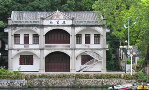 潮州西湖的正門是座石牌坊,牌坊下面一橋橫跨湖面,湖邊有棟白色的洋樓格外顯眼,叫涵碧樓,始建于1922年,屬灰磚水泥結(jié)構(gòu)的洋式雙層小樓房。