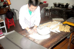 靖海豆輯在制作中需用大木槌反復(fù)捶打成條狀,最后才切成小塊。