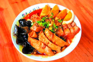 清晨,走到一間賣粿汁的小食攤,叫上一碗熱騰騰、白嫩嫩的滑口粿汁,點(diǎn)些鹵豬腸、鹵肉、鹵蛋、豆干、臘腸或苦瓜等,再澆上鹵香四溢的鹵汁,趁熱一碗下肚,香馥的稻米香味搭配上鹵得恰到好處的肉蛋食材,幸福的滋味不過如此。