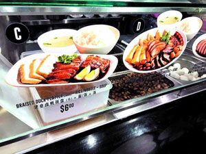 昨天,在新加坡“建業(yè)潮菜”店前,顧客大擺長龍,店里也擠滿了人。在此起彼伏“篤篤”剁肉聲中,一份份鹵鴨套餐接連“新鮮出爐”。鹵鴨套餐由一份鹵鴨拼盤+飯或面+湯而成。鹵鴨拼盤中,切得整齊勻整的鴨肉并著鹵豆腐和鹵蛋,賣相誘人。食客在品嘗鹵鴨時,不時嘖嘖稱贊。據(jù)建業(yè)酒家掌門人紀瑞喜介紹,建業(yè)鹵鴨、鹵鵝均采用潮汕傳統(tǒng)鹵鵝制作方法,具有獨特的濃郁的潮汕地方特色風味。