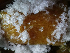 煮熟的梔粽,剝開(kāi)粽葉,色彩金黃,光滑柔軟。吃的時(shí)候用紗線牽拉或小刀切成一小片一小片,用細(xì)白砂糖蘸粘著吃,甜潤(rùn)爽口,涼喉解渴,別有一番風(fēng)味。