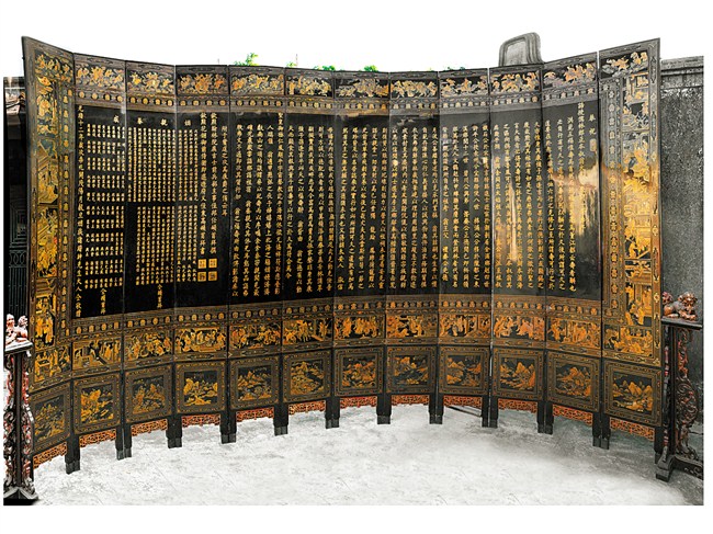 胡楚雄在大漆的領(lǐng)域有著標(biāo)志性的建筑成果。在今年初,記者曾走訪位于潮陽銅盂的永興里潮汕古建筑藝術(shù)館,其中內(nèi)飾布置大量的金漆畫,僅祠堂中間的金漆扇門就有108扇,這些基本都是出自大漆師傅胡楚雄之手,精美的金漆畫讓人領(lǐng)略到潮汕鄉(xiāng)土建筑的地方特色和豐富的民俗文化,精致金漆畫的背后,是大漆師傅對每個工藝步驟用心制作,將漆畫底板經(jīng)過貼麻布、補灰粉和手工反復(fù)打磨等多道工序,最后才能繪上漆畫,堪稱“綠葉”。