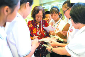 活動當(dāng)天,來自汕頭市第二中學(xué)、汕頭市杏花路第二小學(xué)、汕頭市陽光學(xué)校的100多名學(xué)生在揭牌儀式結(jié)束后參觀了潮劇藝術(shù)博物館、潮劇保護傳承基地、姚璇秋藝術(shù)傳習(xí)所,近距離感受潮劇藝術(shù)的魅力。當(dāng)潮劇著名表演藝術(shù)家姚璇秋、方展榮出現(xiàn)時,學(xué)生們興奮不已,團團圍住自己的偶像,要求簽名、合影、握手,儼然一場小型的明星見面會。兩位老藝術(shù)家與小潮劇迷們親密互動,希望他們多聽、多看潮劇,發(fā)自內(nèi)心地喜歡潮劇,將這一潮汕地區(qū)的優(yōu)秀傳統(tǒng)文化一直傳承下去。活動當(dāng)晚,學(xué)生們還興致勃勃地觀看了“名家傳戲·經(jīng)典再現(xiàn)”——潮劇《梅亭雪》傳承匯報演出專場。