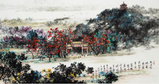 值得關(guān)注的是,林耀此次有4幅作品展現(xiàn)企石本地風(fēng)采。其中,作品《秋楓長(zhǎng)青》濃墨描繪了企石鎮(zhèn)江邊村的一棵千年古楓樹(shù),用線條勾勒出了古村落的面貌;作品《黃大仙公園》仿佛在山水之間灑上了姹紫嫣紅的色彩,大氣龐然;作品《紅棉報(bào)春》使用了大幅的艷麗色彩,將東江的烏篷船、飛鳥(niǎo)、村落等景色融入其中;作品《東江河畔》將東江朦朧的景色映襯在嬌艷的紫荊花下,秀麗燦爛。