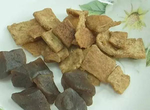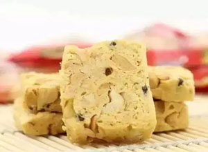 潮汕的餅食,比較出名的產(chǎn)品就有朥餅、朥糕、腐乳餅、綠豆餅、綠豆糕、米潤(rùn)、麻薄酥、豆方以及荖花等等。 這些餅食的用料并不復(fù)雜,但制作的考究、品種的豐富讓人叫絕。以糖和花生的組合為例,光是這兩者的搭配,就能制作出豆方、豆條、豆?jié)?、束砂以及酥糖等幾十種產(chǎn)品。每一種產(chǎn)品都有獨(dú)特的工藝,對(duì)選材的標(biāo)準(zhǔn)、搭配的比例、熬糖的火候也都有特殊的要求。