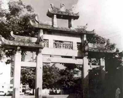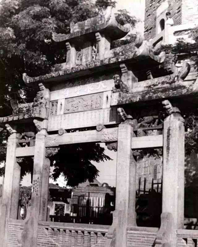原文光塔左邊的天褒孝節(jié)坊,清雍正間(1723~1735)為生員姚同朝妻鄭氏、監(jiān)生鄭天民妻陳氏、生員陳玉圖妻趙氏、蕭篤遜妻林氏等建。(攝于1952年)