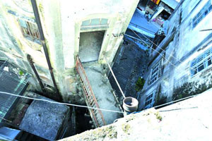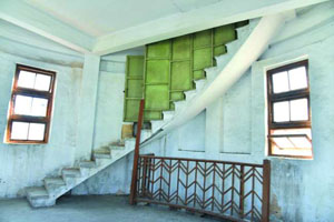 從主樓進入到塔樓,要經過一條窄小的懸空橋,再登上去就是寬敞的天面。塔樓內部樓梯沿墻面螺旋上升,裝飾感十足。由于樓層間距大,整座大樓毫不低于八九層高的居民樓,從窗戶往外,依然可以看得很遠。