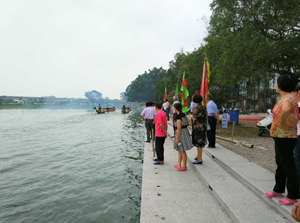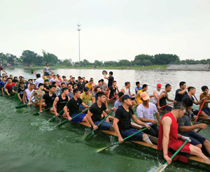 今天下水的只有兩條龍舟,由社區(qū)里4個(gè)片區(qū)的青壯年村民分成兩隊(duì)水上競技。接下來五月初一到五月初四還有小規(guī)模的龍舟賽做為正式龍舟賽的前奏,到了五月初五端午節(jié)這一天,龍舟賽拉開帷幕,社區(qū)的四艘龍舟將齊齊上陣。